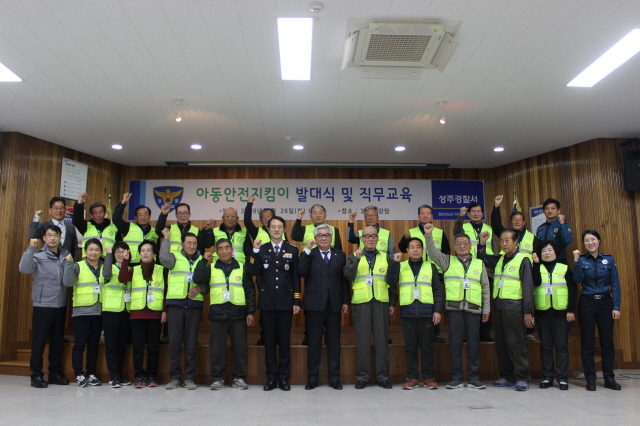 성주의 아동안전은 우리가 책임지겠다【경상포커스=전상철기자】성주경찰서는 26일 오후 2시 경찰서 3층 대회의실에서 배기명 경찰서장을 비롯해 여해용 경우회장, 아동안전지킴이 20명이 참석해 올해 성폭력․학교폭력․유괴 등 아동대상 범죄예방을 위해 활동 할 아동안전지킴이 발대식을 가졌다.