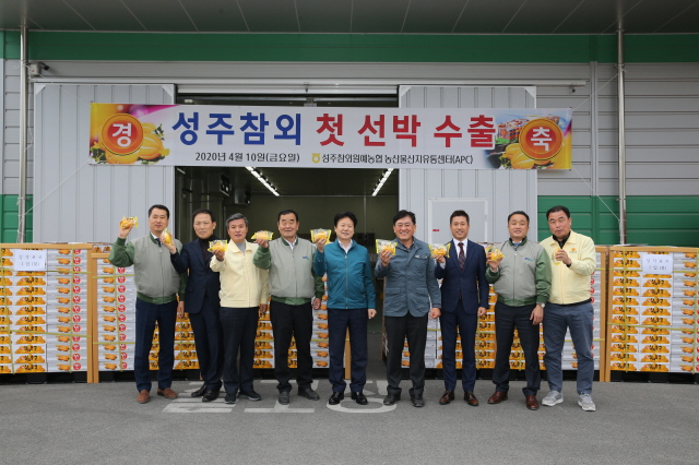 【경상포커스=박동석기자】성주군은 지난 10일 성주참외원예농협 농산물산지유통센터에서 이병환 군수를 비롯해 성주군의회(의장 구교강, 의원 도희재),경북 도의회(위원장 이수경, 의원 정영길), 성주참외원예농협(조합장 도기정) 등 4개 기관이 참석한 가운데 싱가포르 첫 선박 수출 상차식을 가졌다.