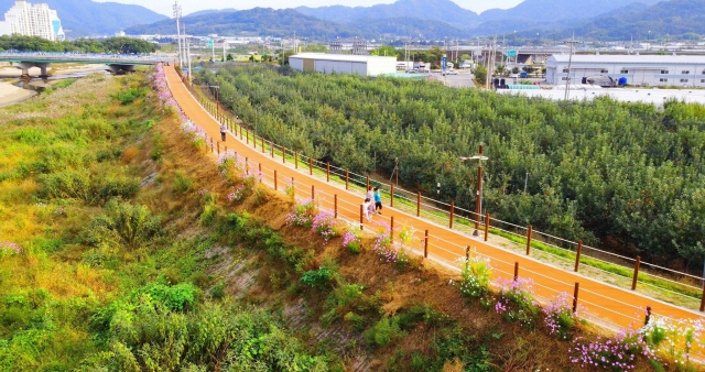 이 산책로는 초화류 식재 등 많은 볼거리 제공과 함께 휴게공간 마련으로 휴식과 만남이 이루어지는 소통의 공간을 조성했다.