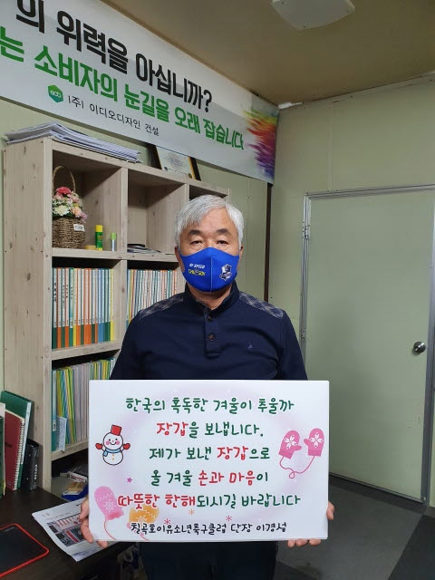 이경섭 단장은 “한국의 혹독한 겨울이 추울까 손장갑을 보낸다”며“제가 보낸 장갑으로 올 겨울 손과 마음이 따뜻한 한해 되시길 바란다”고 말했다.