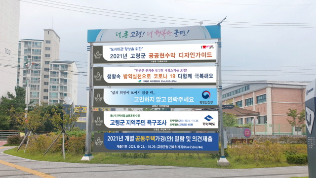 동시에 그동안 부서별 과도한 색채와 무질서한 디자인으로 도시미관을 해치는 문제를 해결하기 위해 공공현수막 표준디자인을 마련하여 배포한다. 표준디자인은 주변 환경과 조화되는 색상, 비움, 간결한 디자인으로 과대한 색채 사용은 지양하고 고령 기와색을 사용하였으며, 대가야 금관을 형상화해 역사관광 도시 고령의 정체성을 담았다.