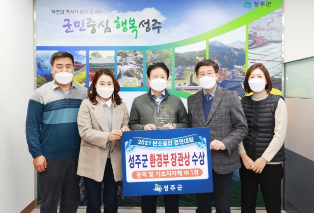 【경상포커스=전상철기자】성주군(군수 이병환)은 환경부에서 주최하고 환경기후․환경네트워크에서 주관한 기관‧단체‧학교․기업․공동주택 등을 대상으로 한 2021년 탄소중립 경연대회에서 광역 및 기초지자체 중 1위에 선정돼 지난 6일 서울 문화비축기지(서울시 마포구 소재)에서 환경부장관상(우수)을 수상했다.