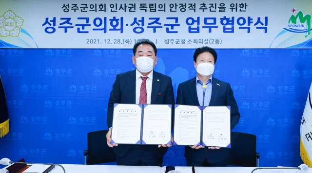 성주군의회와성주군과 업무협약 체결![]() 【경상포커스=전상철기자】성주군의회와 성주군은 28일 지방의회 인사권 독립의 안정적 추진을 위해업무협약을 체결했다.