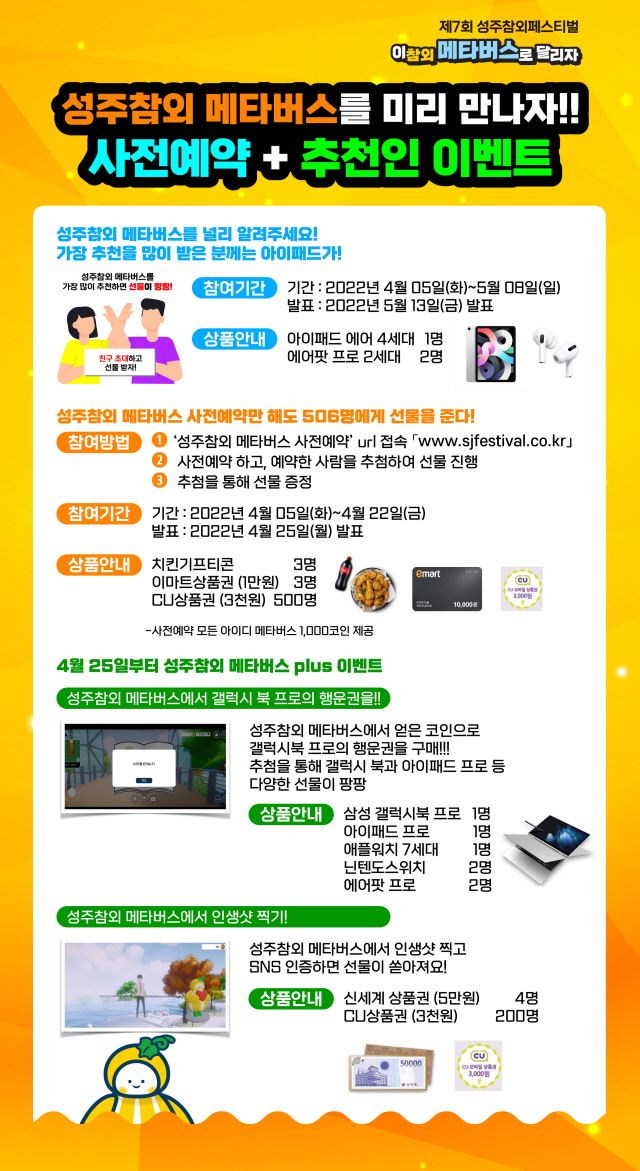 성주참외 메타버스를 미리 예약하자!!![]() 제7회 성주참외 페스티벌 온(ON)세상 메타버스 사전 이벤트 진행