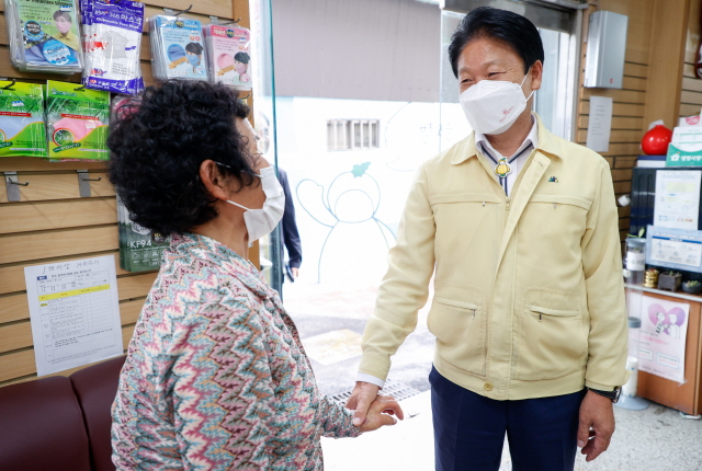 지난 8일 성주읍 도시재생 뉴딜사업(1단계)의 일환으로 시행 중인 창의문화교류센터 건립공사 현장 등을 방문한 이 군수는 15일 오전에는 성주읍 시가지를 돌아보며 주민들과 더욱 가까이에서 소통에 나섰다.