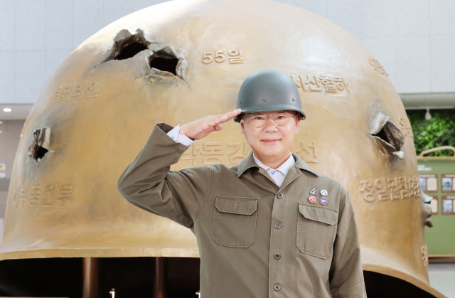 김 군수는 19일 칠곡호국평화기념관에서 6·25 당시 국군 군복을 입고 경례하며 군부대 유치에 대한 강한 의지와 진정성을 드러냈다.