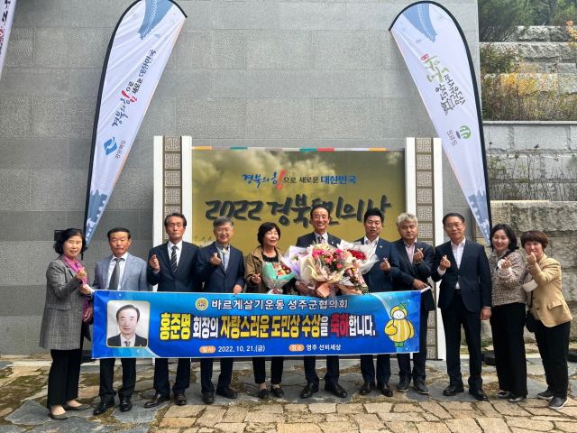 【경상포커스=전상철기자】21일 영주 선비세상에서 개최된 ‘2022 자랑스러운 경상북도민상’ (이하 도민상) 시상식에서 홍준명(65세) 바르게살기운동 성주군협의회장이 도민상 수상의 영광을 안았다.