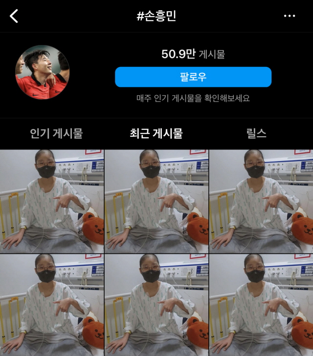 이를 본 축구 팬들이 인스타그램에서 손흥민 선수에게 전하기 위해 리그램 릴레이를 벌이고 있다.