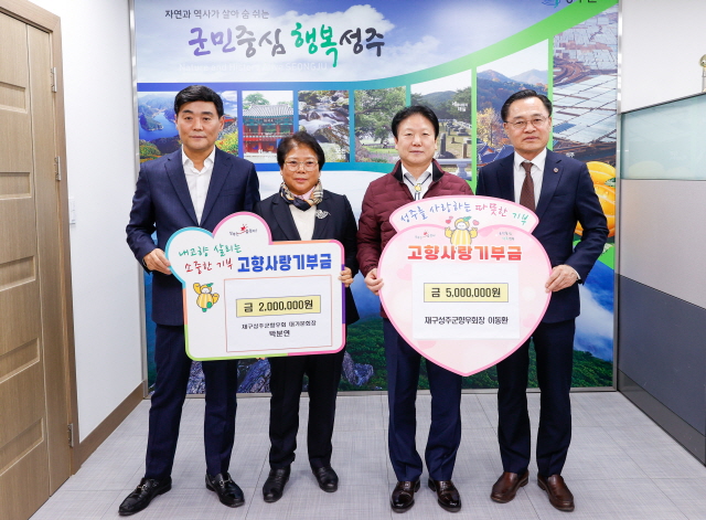 재구성주향우회장 이동환씨는 고향을 사랑하는 마음을 전달하고자 고향사랑 기부금 500만원을, 재구성주향우회 대가분회장 박분연씨는 200만원을 성주군청을 직접 방문해 기부했다.