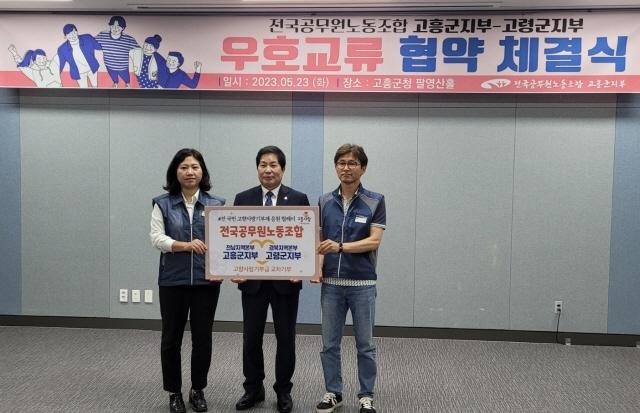 전국공무원노동조합 고령군지부-고흥군지부 우호교류 협약 체결![]() 【경상포커스=전상철기자】전국공무원노동조합 고령군지부(지부장 류동열)는 23일 오후 5시 고흥군청 팔영산홀에서 전국공무원노동조합 고흥군지부(지부장 장인화)와 양측 관계자 20여명이 참석한 가운데 우호교류 협약 체결식을 가졌다.