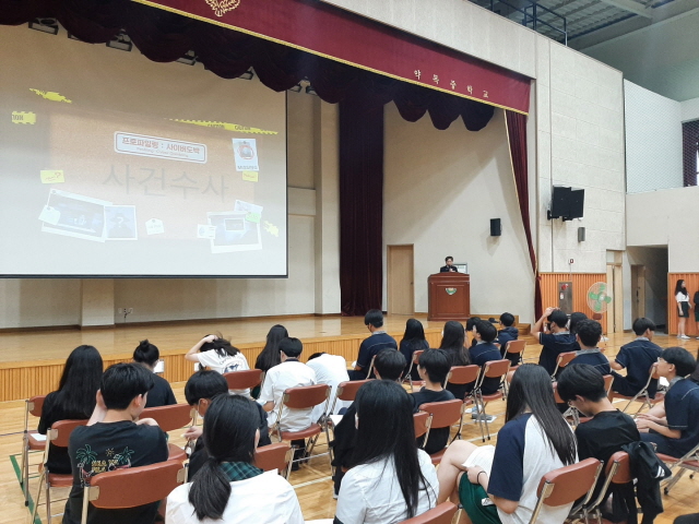 칠곡경찰서, 청소년 사이버도박 및 마약 예방교육 실시![]() 약목중학교 전교생 100여명 대상 맞춤형 교육, 경각심 고취