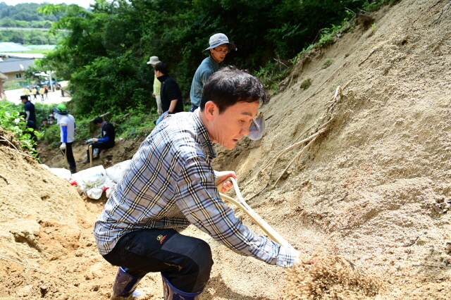이남철 고령군수를 비롯한 고령군청 공무원 40여 명은 무덥고 습한 날씨에도 불구하고 25일 영주시 장수면 갈산리와 파지리에 나뉘어 투입되어 구슬땀을 흘리고 있다.