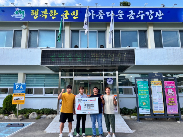 평소 지역사회의 크고 작은 행사에 참여해 봉사하는 등 많은 활동을 꾸준히 하고 있는 금수면의 젊은 조직인 자율방범대원들은 8월 1일부터 새로이 시작되는 “금수강산면”과 “낳을수록 더 행복한 성주”를 위해 온 국민이 함께하는 만원이상 기부운동에 참여해 의미를 주었다.