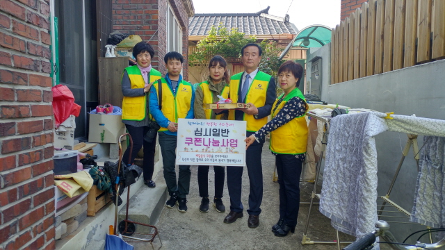 ‘십시일반 쿠폰나눔사업’은 일반 가정에서 모아둔 배달음식점의 치킨, 피자, 제과점 쿠폰을 왜관읍에 비치해둔 쿠폰나눔함을 통해 모아 저소득가구 방문 시 모은 쿠폰을 음식으로 교환하여 직접 전달하는 사업이다.