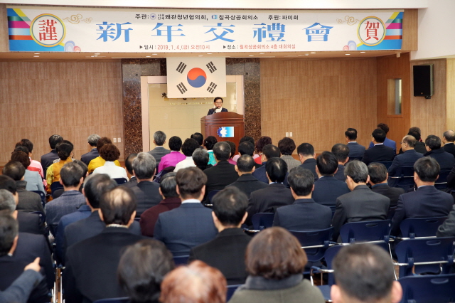 【경상포커스=배성호기자】칠곡군은 지난 4일 칠곡상공회의소 4층 강당에서 백선기 군수를 비롯해 각급 기관 및 사회단체장, 상공인 등 3백여 명이 참석한 가운데 신년교례회를 가졌다.